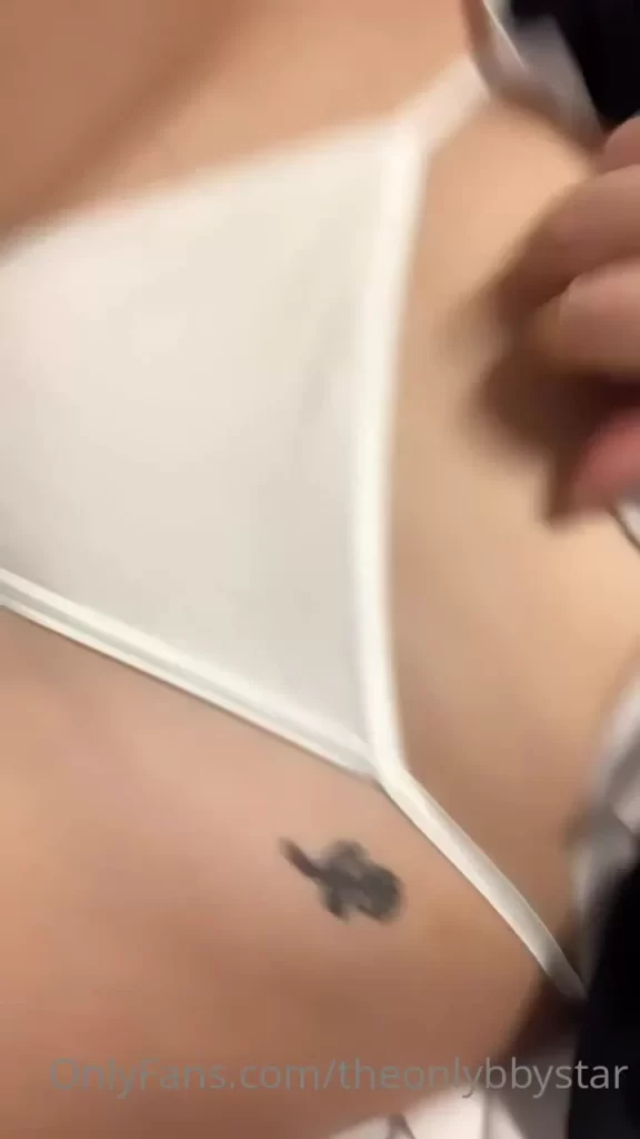 A slim blonde teen with straight, shoulder-length hair is the focus here. She’s in a cozy bedroom with warm, soft lighting that gives everything a relaxed vibe. Her outfit is a mix of white and black, with decorative ribbons and pearls adding a touch of elegance. The camera gets up close, handheld, and slightly tilted, giving it a personal feel. She lifts her top to show off her small breast and lower abdomen, where a tattoo stands out. The shots are all about her posing, highlighting her body and the details of her tattoo.