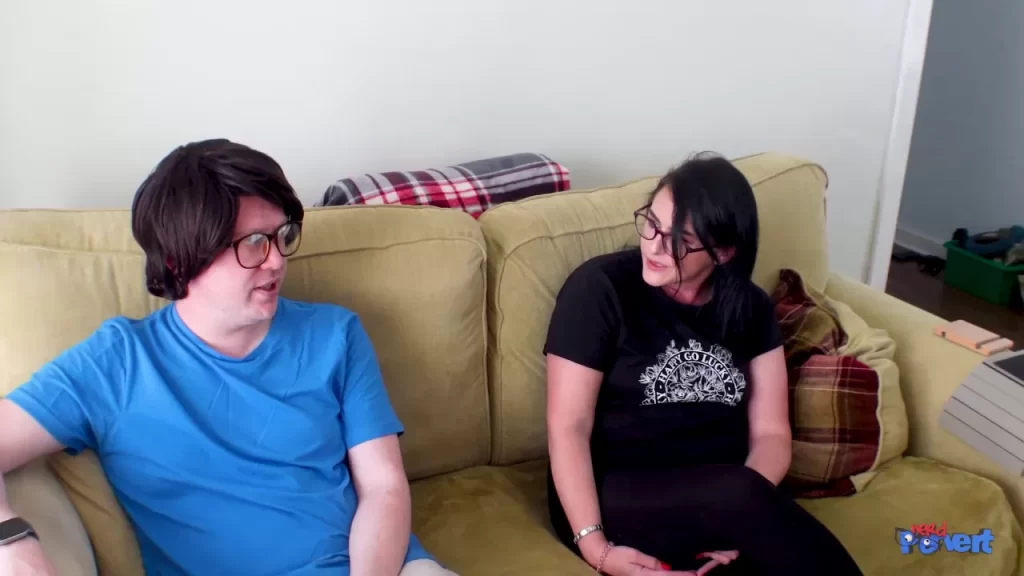 Kristy Danson, a brunette MILF with glasses, sits on a couch in a bright living room, leaning into a blowjob with focused intensity. The guy’s face isn’t shown — total mystery cock — but he’s got a beard and glasses, dressed in a black t-shirt like a nerdy professor type. She’s on her knees, bobbing steadily, lips stretched, hands gently working his shaft. Camera stays tight on her face and mouth during most of the suck, clean angles, no cuts to fake reaction shots. They talk briefly between takes, casual vibe, like a study session turned dirty. No hardcore stuff after — just solid, no-frills facial blowjob action with a thick-lipped, natural-looking performer who doesn’t overact.