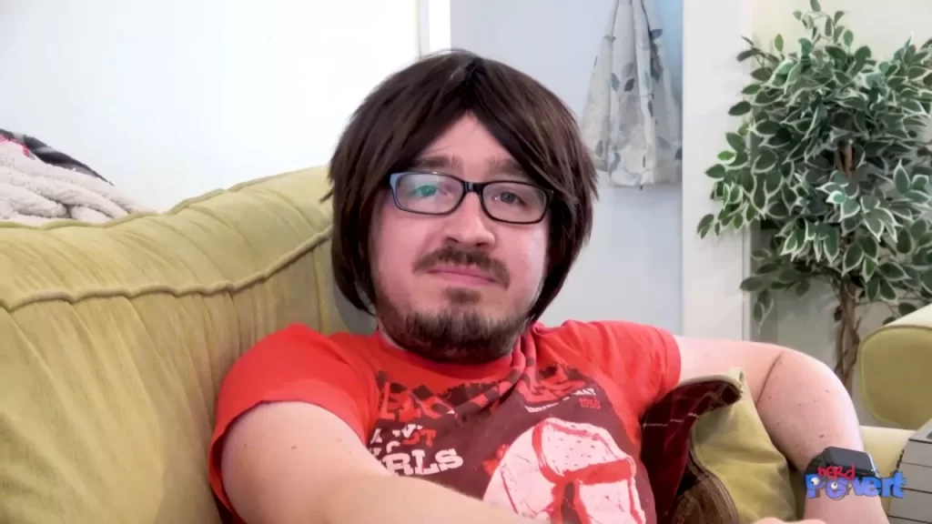 Sienna Hudson rocks a long pink wig and a sheer polka-dot top before stripping down for NerdPervert, the guy in the red ‘Pervert’ shirt with glasses. He’s average build, kinda nerdy, sits back on the green couch while she straddles him in a riding session with lots of grinding and tight pussy shots. The blowjob scene is messy — she takes it deep, lots of spit, his dick glistening from her mouth before he cums hard on her face. Camera stays close during cumshot, full HD jizz dripping down her cheeks. Background looks like a home studio with collectibles and a green screen, gives it that amateur porn vibe but well-lit. Her expression when swallowing is convincing — not faking it.